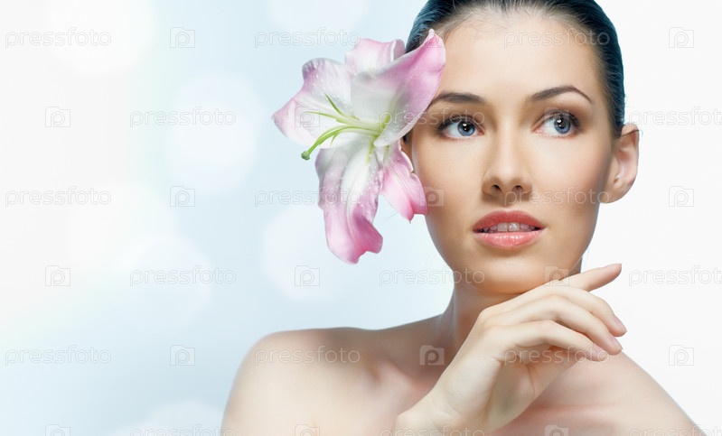 Молодая женщина с цветком лилии в волосах