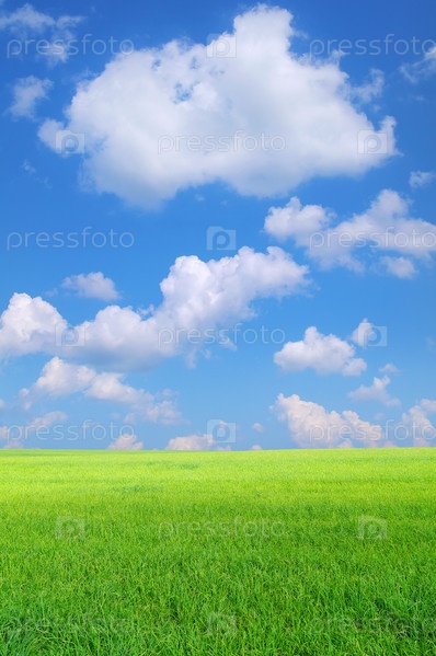 Зеленое поле под голубым небом