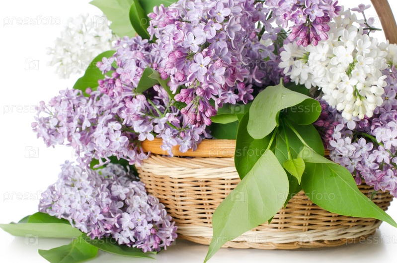 Корзина сирени, изолированная на белом фоне