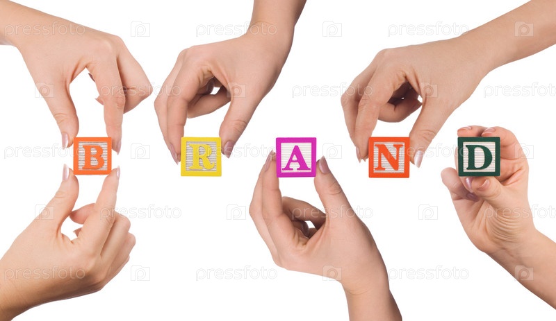 Руки держат слово 'БРАНД' на белом фоне