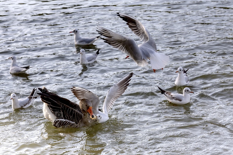 Дерущиеся чайки и гусыня