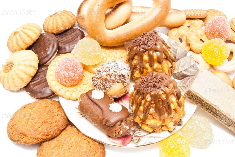 Кондитерские изделия на белом фоне