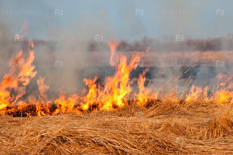 Горящая трава в поле