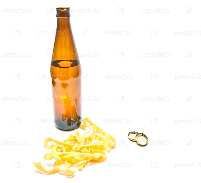 Бутылка пива и кальмары крупным планом