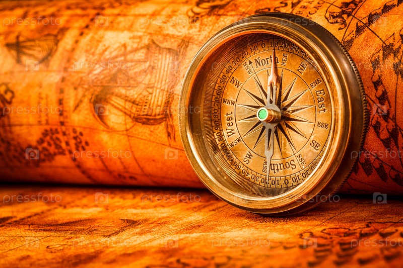 Компас на карте древнего мира