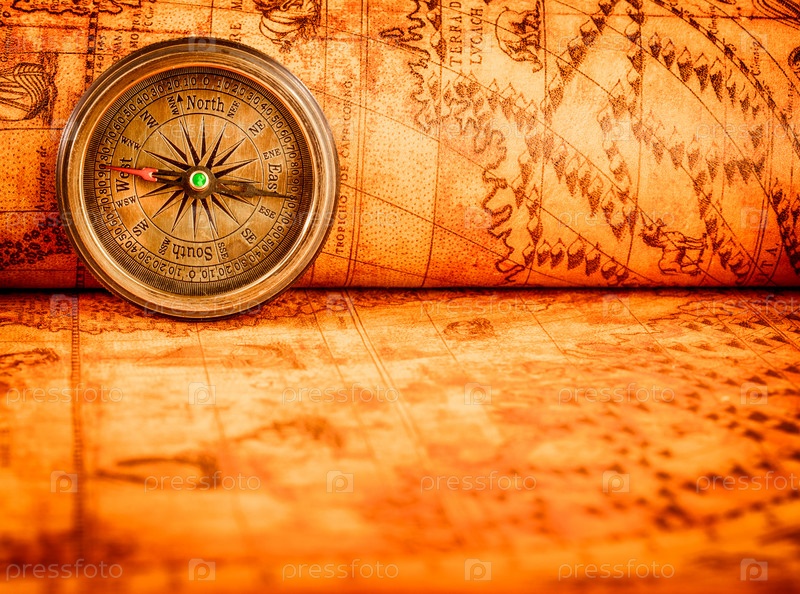 Компас на карте древнего мира