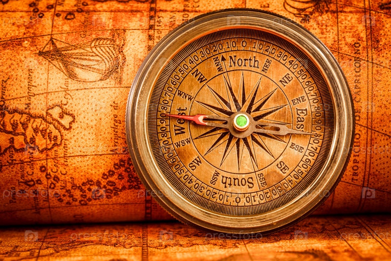 Компас на карте древнего мира