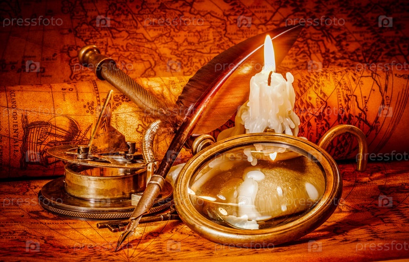 Винтажные предметы на древней карте