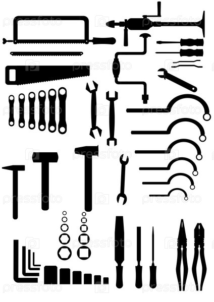 Набор инструментов для ремонта, белый фон