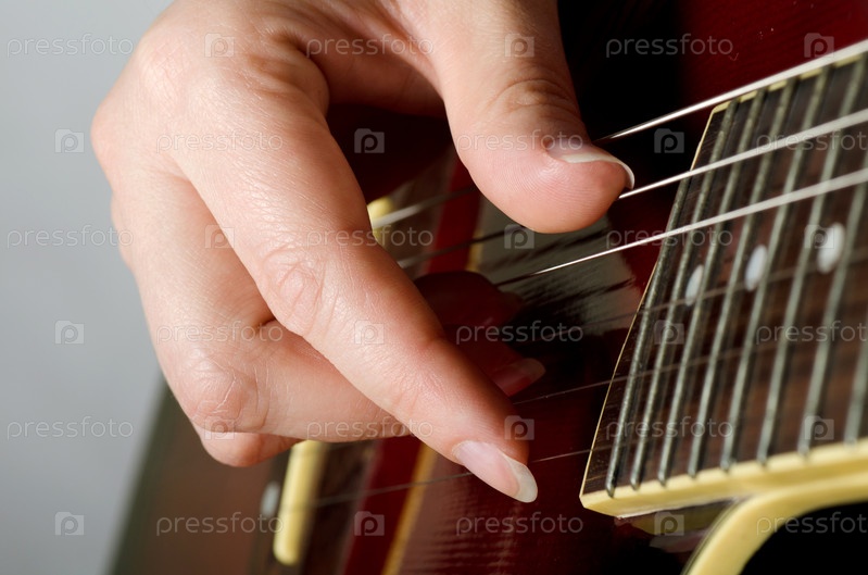 Женская рука на струнах акустической гитары