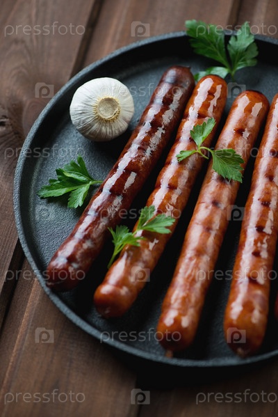 Колбаски-гриль с петрушкой и чесноком на сковороде