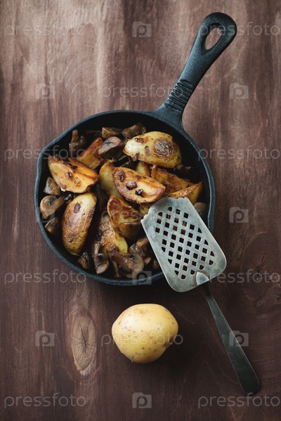 Обжаренный картофель в мундире с грибами