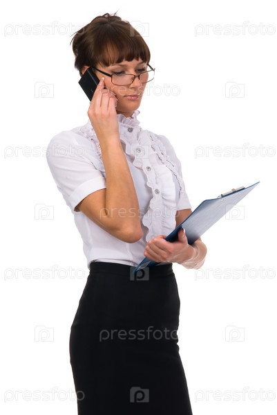 Молодая бизнес-леди, разговаривающая по мобильному телефону