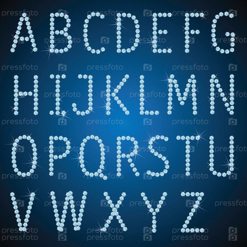 Латинские буквы из драгоценных камней на синем фоне