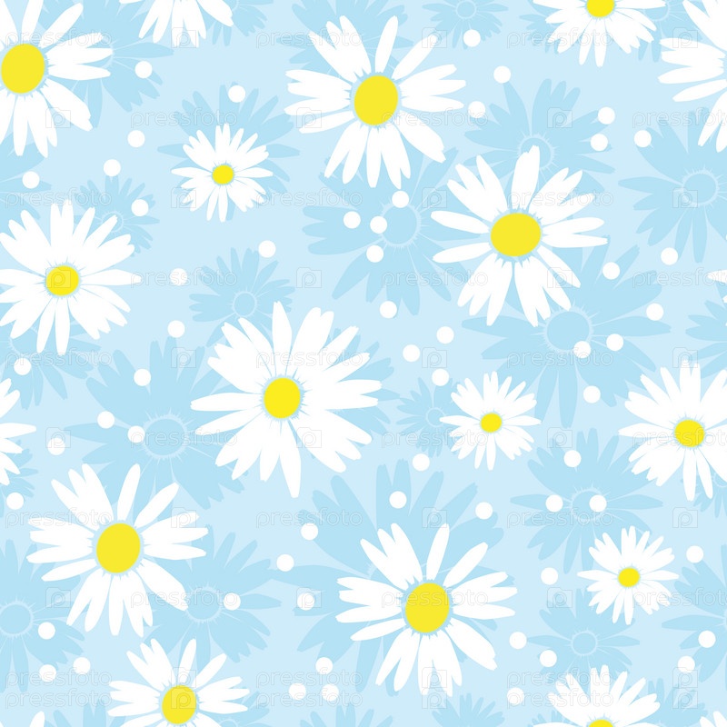 Ромашки на голубом фоне, бесшовная текстура