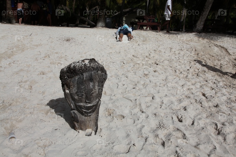 Вырезанная из пальмы человеческая голова на пляже