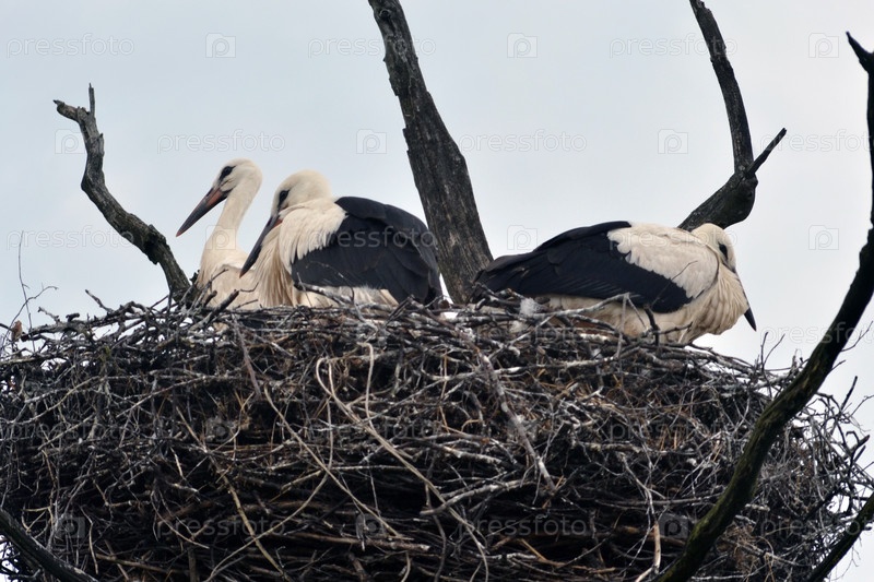 Птенцы белого аиста в гнезде