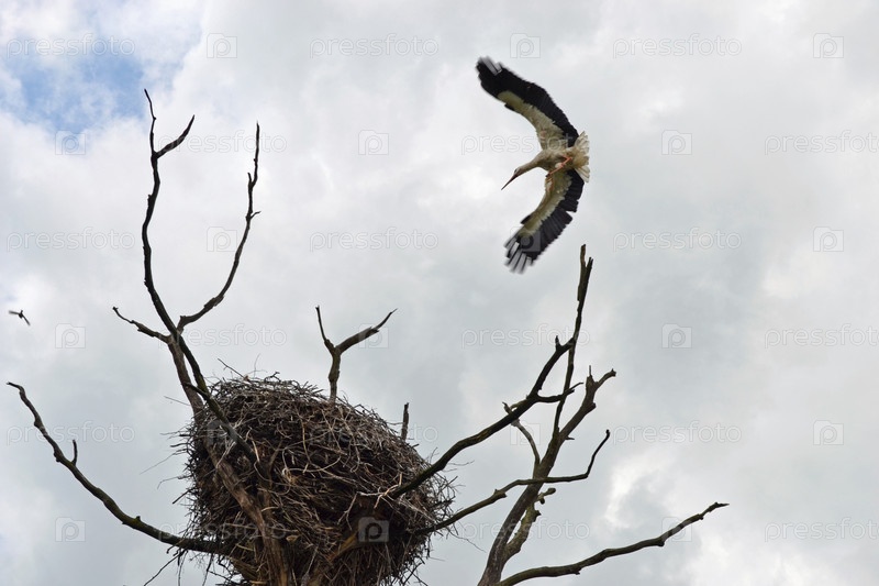 Белый аист прилетел в свое гнездо