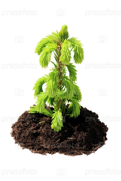 Саженец в земле на белом фоне