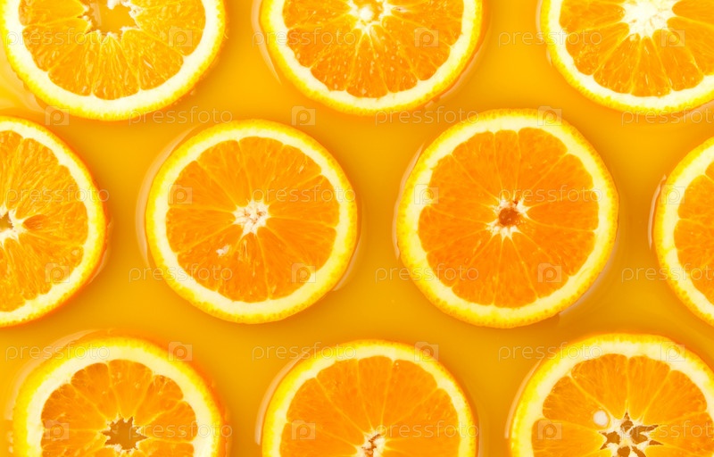 Апельсины лежат в апельсиновом соке