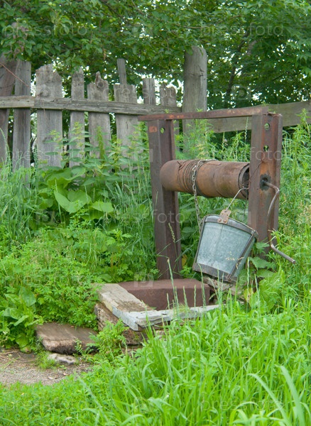 Старый деревенский колодец, заросший густой травой