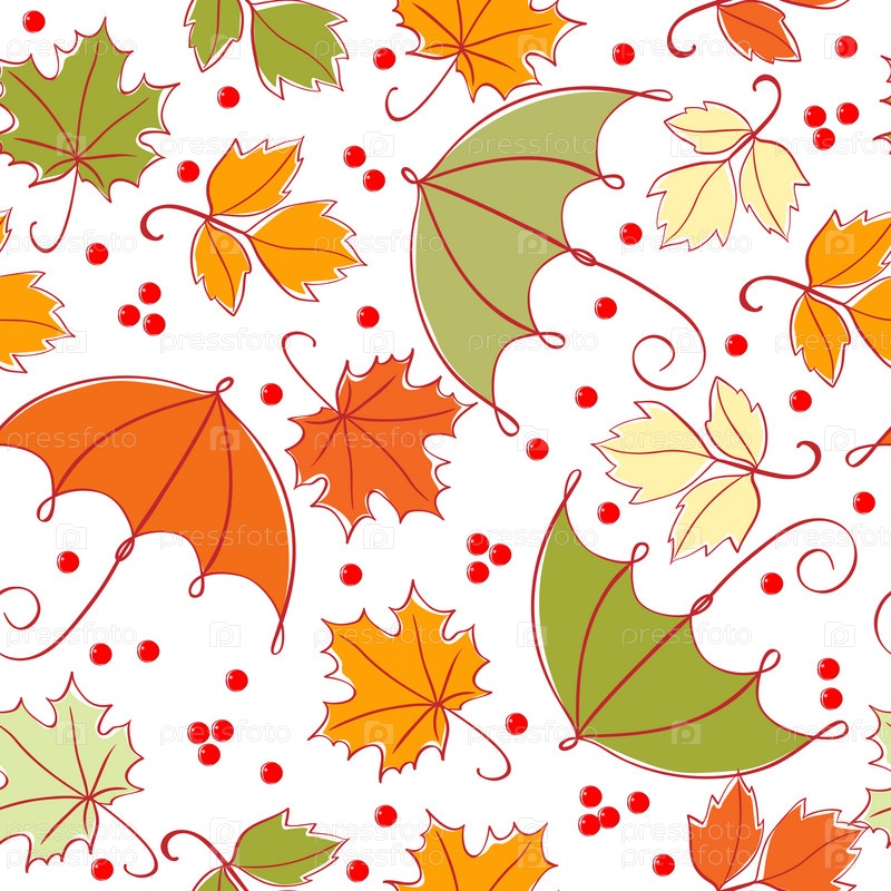 Бесшовная текстура с осенними листьями и зонтами