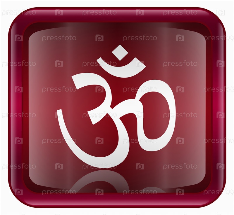 Темно-красная веб-иконка с изображением символа Ом, изолировано на белом фоне