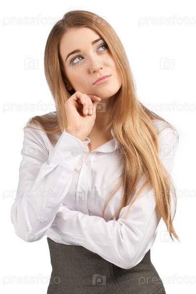 Портрет задумчивой деловой женщины, изолировано на белом