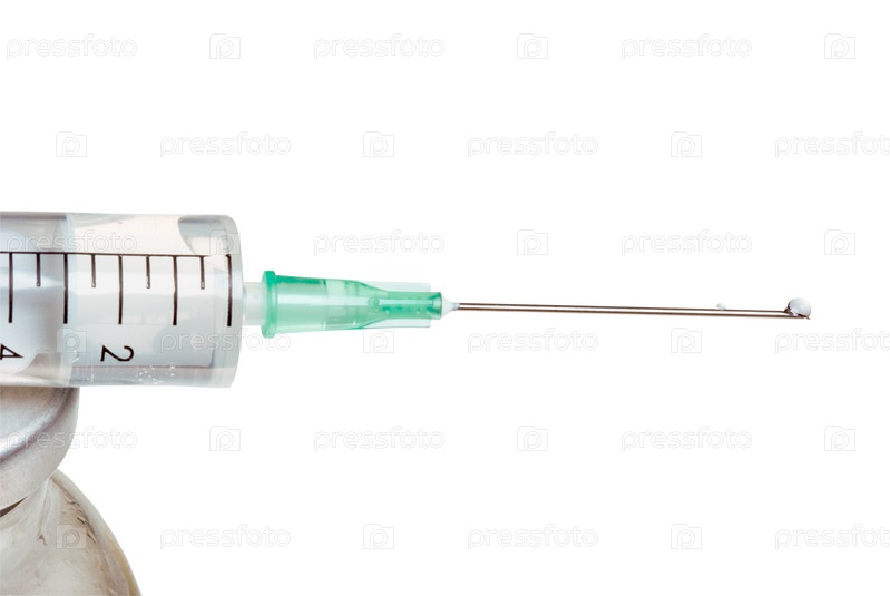 Бросьте на кончик иглы шприца, он изолирован, на белом фоне