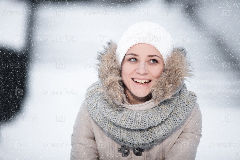 Девушка на свежем воздухе под снегопадом
