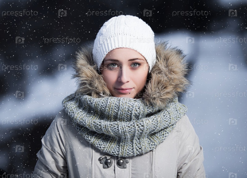 Девушка позирует на зимней улице