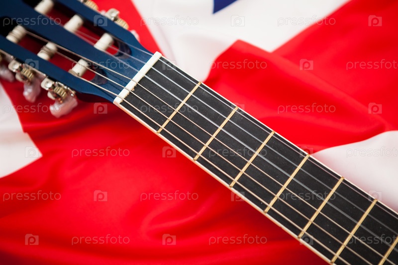 Гриф гитары на фоне флага Великобритании