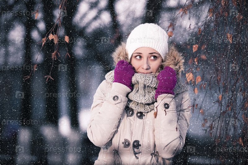 Девушка позирует на зимней улице