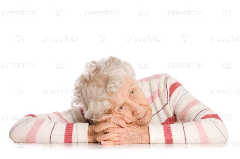 Пожилая женщина на белом фоне