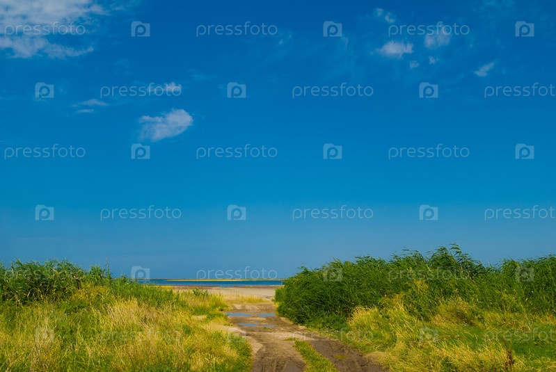 Голубое небо над морским берегом