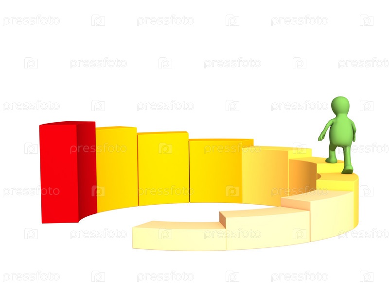 Стилизованный 3d человечек, поднимающийся по диаграмме