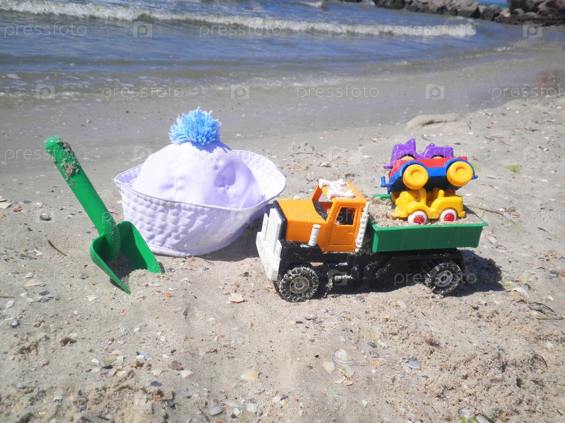 Детские игрушки и шапочка на пляже