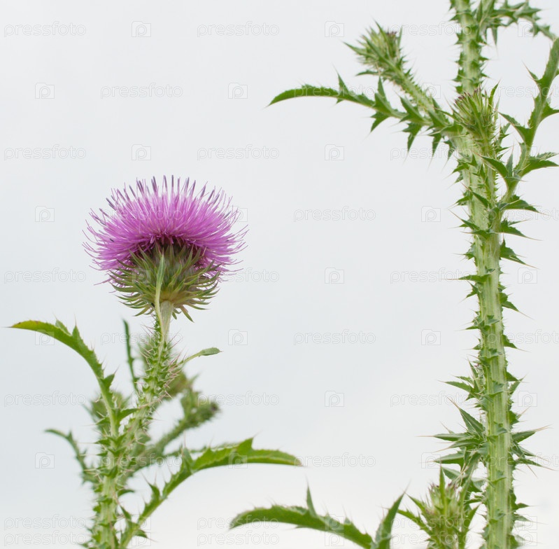 Цветок татарника на голубом фоне