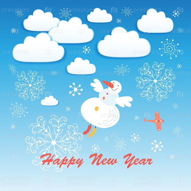 Новогодняя открытка со снеговиком