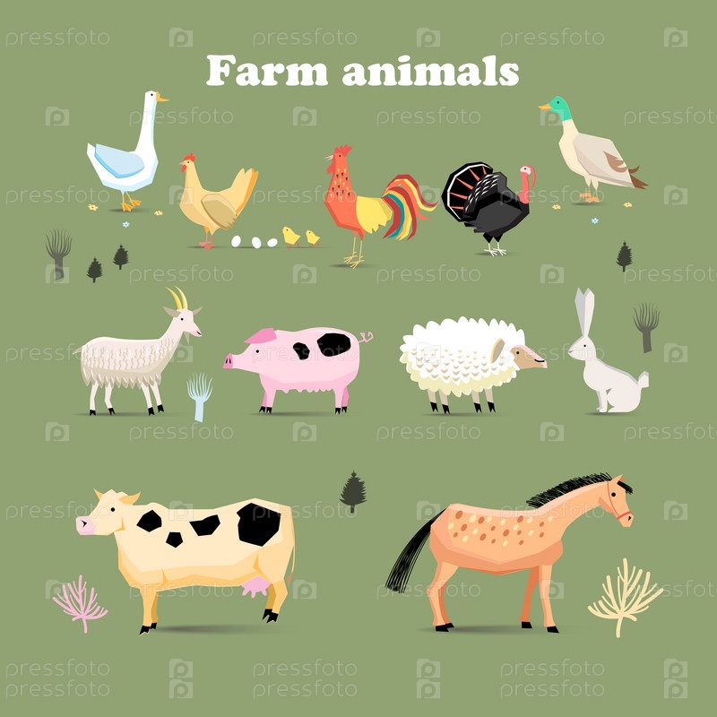 Домашние животные на зеленом фоне