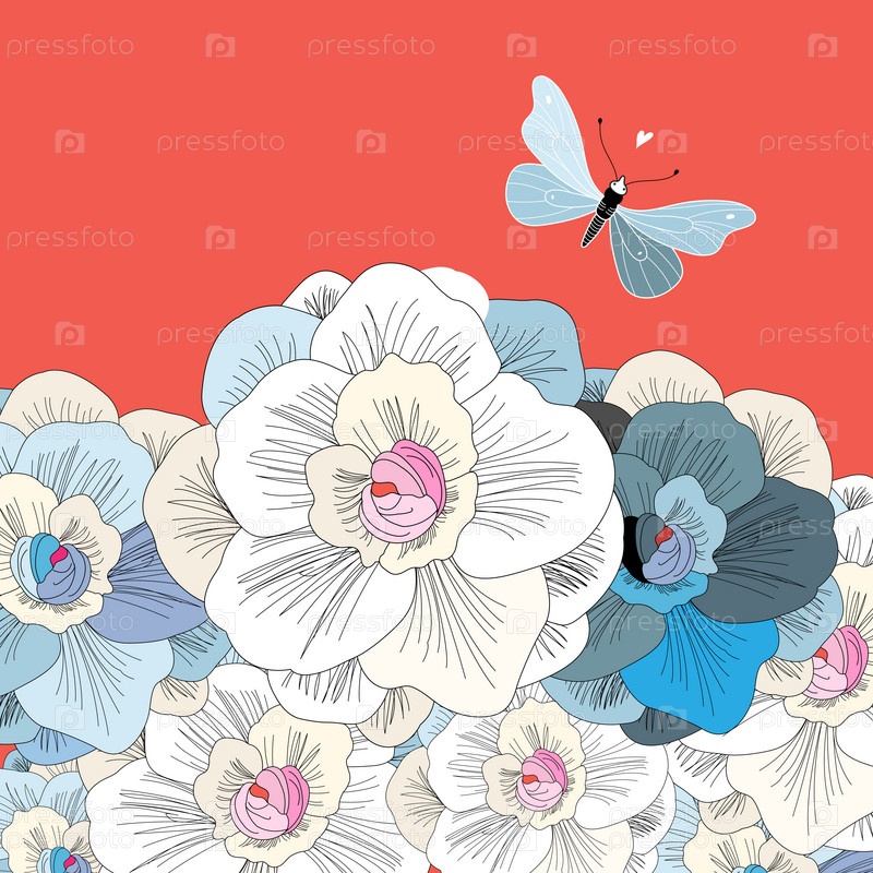 Цветочный фон с бабочкой