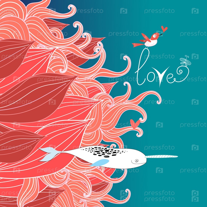 Цветочная открытка с птицей