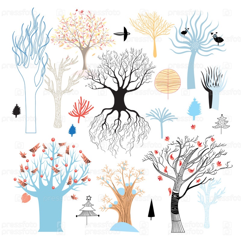 Деревья на белом фоне
