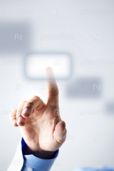 Мужчина нажимает на сенсорную кнопку