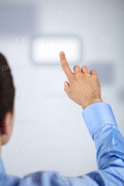 Мужчина нажимает на сенсорную кнопку