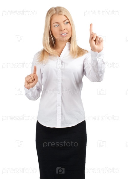 Деловая женщина нажимает на сенсорную кнопку