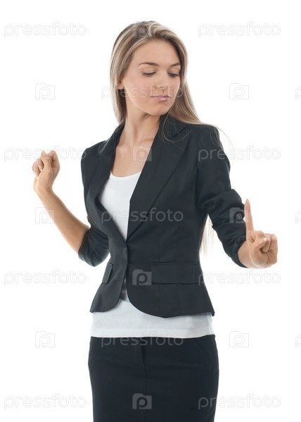 Деловая женщина нажимает на кнопки в воздухе