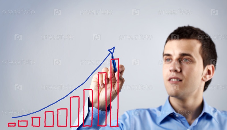Деловой мужчина рисует график прибыли