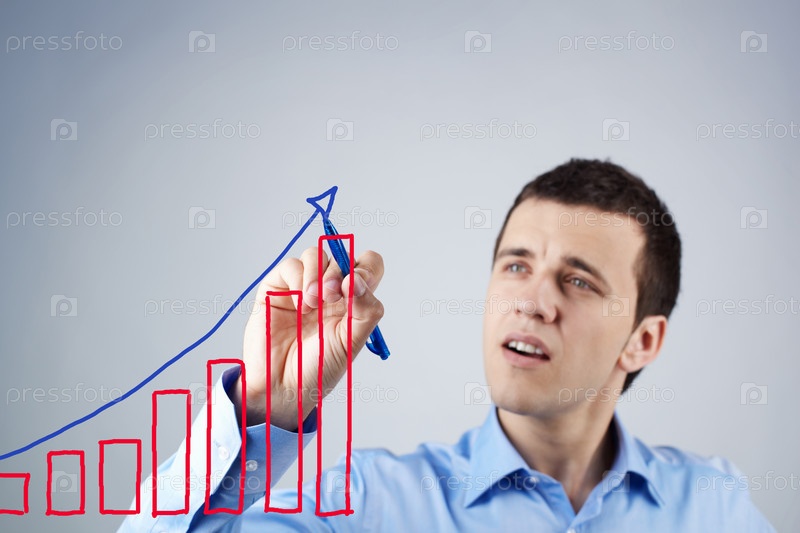 Деловой мужчина рисует график прибыли