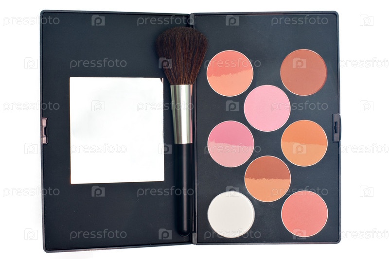 Набор румян и кисть для макияжа, изолировано на белом фоне